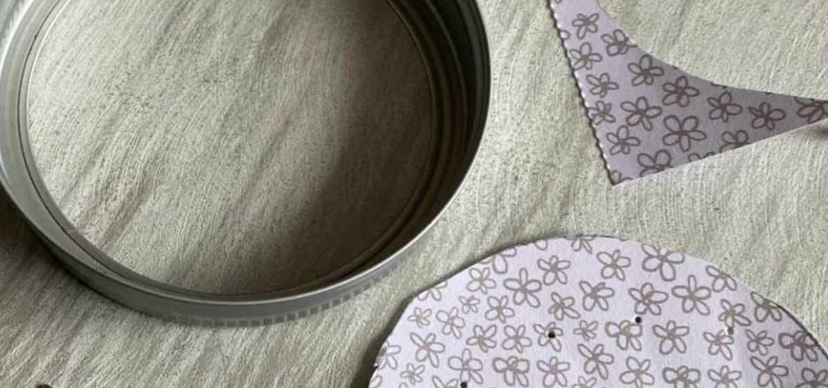 So I turned to Pinterest and found a recipe for an air freshener made from 2 ingredients: baking soda and essential oils. I have a small mason jar that for some reason doesn’t have the lid insert, and I have no idea where it would be! So I used that and the cardstock became the lid.